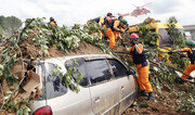 서울 강남·송파소방서가 공동 주최한 ‘풍수해 대비 긴급구조종합훈련’에 참가한 소방관과 군인들이 27일 서울 송파구 탄천공영주차장에서 산사태로 차량과 탑승객이 매몰된 상황을 가정한 구조 훈련을 하고 있다. 이번 훈련은 재난 상황 발생 시 소방서와 군부대 등 유관기관의 협조 능력 향상에 초점을 맞췄다. 박영대 기자 sannae@donga.com}