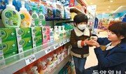 서울을 비롯한 전국 대다수 지방에 황사특보가 내려진 23일 서울 중구 청파로 롯데마트 서울역점을 찾은 소비자가 마스크를 쓴 아이에게 손소독제를 뿌려주고 있다. 롯데마트는 다음 달 31일까지 손소독제, 비누, 마스크 등 황사 관련 용품을 최대 50% 저렴하게 판매한다. 전영한 기자 scoopjyh@donga.com}