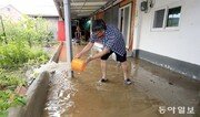 집중호우가 내린 28일 전남 해남군 문내면 선두마을의 한 주민이 마당에 고인 빗물을 양동이로 퍼내고 있다. 전국적으로 29일 오후 대부분의 지역에서 비가 그쳤다가 30일 다시 장맛비가 내릴 것으로 보인다. 해남=박영철 기자 skyblue@donga.com}