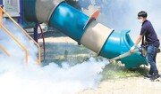 태풍이 지나가고 장마가 잠시 주춤한 4일 광주 북구 반룡공원에서 기동방역반원이 모기 등 해충 퇴치를 위해 연막 소독작업을 하고 있다. 전국이 30도 안팎의 찜통더위를 보이는 가운데 5일 오후 대기 불안정으로 곳곳에서 요란한 소나기가 내릴 것으로 보인다. 광주=박영철 기자 skyblue@donga.com}