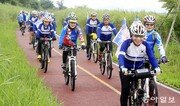 장마가 주춤해진 5일 전남 나주시 노안면을 지나는 영산강 자전거길을 찾은 자전거 동호인들이 긴 행렬을 이뤄 달리고 있다. 박영철 기자 skyblue@donga.com}