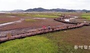 9일 자연과 생태가 잘 보전된 슬로시티 중 하나인 전남 신안군 증도 태평염전에는 자줏빛 칠면초와 녹색 함초가 만개해 이색 풍경을 연출하고 있다. 박영철 기자 skyblue@donga.com}