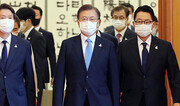 문재인 대통령이 29일 박지원 국가정보원장과 이인영 통일부 장관, 김창룡 경찰청장에게 임명장을 수여했다. 문 대통령은 박 원장과 이 장관에게 임명장을 수여하며 “막혀 있고 멈춰 있는 남북관계를 움직여 나갈 소명이 두 분에게 있다”고 말했다. 문 대통령은 박 원장 손자에게는 ‘신뢰’라는 꽃말을 가진 송악과 아게라툼 등이 담긴 꽃다발을, 이 장관 부인에게는 ‘평화와 희망’을 의미하는 데이지 꽃다발을, 김 청장 부인에게는 ‘수호’ 등을 의미하는 말채나무 등이 담긴 꽃다발을 줬다. 야당에선 임명식에 대해 “문재인 정부가 임명을 힘으로 밀어붙이고 꽃다발 잔치를 하고 있다”는 비판이 나왔다. 야당의 반발에도 박 원장과 이 장관을 곧바로 임명하면서 일방통행식 국정 운영에 나서고 있다는 것이다. 이에 대해 윤도한 대통령국민소통수석비서관은 청문회에서 박 원장을 향해 제기된 대북 송금 이면합의 의혹 문건에 대해 “실제로 존재하는 문서인지 저희가 확인했다”며 “청와대, 국정원, 통일부 등 관련 부처를 모두 확인했지만 정부 내에 존재하지 않는 문서”라고 못 박았다.황형준 기자 constant25@donga.com}