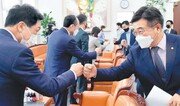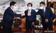 여야 원내대표가 27일 세 차례 만나 언론중재 및 피해구제 등에 관한 법률(언론중재법) 개정안에 대해 논의했지만 합의에 이르지 못 했다. 여야는 28일에도 징벌적 손해배상제 등 핵심 쟁점에 대한 추가 논의를 하기로 했다. 더불어민주당 윤호중 원내대표는 이날 박병석 국회의장 주재로 열린 국민의힘 김기현 원내대표와의 회동을 마친 뒤 “오늘(27일) 예정됐던 본회의는 내일 오후 2시에 열기로 했고, 내일 오전 11시에 협상을 이어가기로 했다”며 “많은 어려움 있지만 마지막까지 합의하기 위해 최선을 다하겠다”고 밝혔다. 지난달 ‘27일 본회의에 언론중재법을 상정한다’는 여야 합의에 따라 당초 민주당은 국민의힘과 합의에 이르지 못해도 강행 처리에 나선다는 계획이었다. 그러나 박 의장이 여야 합의 없이는 직권 상정이 어렵다는 뜻을 밝히고, 청와대도 단독 처리에 우려를 표하면서 일단 제동이 걸렸다. 이날 여야 원내대표는 징벌적 손해배상제와 기사열람차단청구권 등을 놓고 의견 조율을 시도했다. 민주당이 주장해온 피해액의 최대 5배에 이르는 배상액 기준을 빼는 대신 허위조작 보도에 대해 가중처벌이 가능하도록 하는 조항을 넣는 방안 등이 논의된 것으로 알려졌다. 민주당 관계자는 “협상이 진행 중이고 당내 여러 의견을 듣는 과정이어서 아직 구체적인 사항이 정해진 것은 없다”고 말했다. 권오혁 기자 hyuk@donga.com}