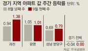 서울 집값 상승세가 인접 도시로 번지고 있다. 경기 과천, 광명 등의 아파트 가격이 한 주 만에 1% 넘게 올랐다. 서울 아파트값 역시 역대 최대 주간 상승률 기록을 한 주 만에 갈아 치웠다. 6일 한국감정원이 발표한 주간 아파트 가격동향에 따르면 9월 첫 주(3일 기준) 경기 과천 아파트값은 전주 대비 1.38% 오르면서 전국 최대 상승 폭을 보였다. 과천은 7월 셋째 주까지는 집값이 하락(―0.05%)하던 곳이다. 광명은 1.01% 오르면서 4주 연속 1% 안팎의 상승세를 보였다. 주간 상승률 1%는 10억 원짜리 아파트가 한 주 만에 1000만 원 올랐다는 뜻이다. 성남 분당구(0.79%) 역시 올해 2월 둘째 주(0.82%) 이후 7개월 만에 가장 많이 올랐다. 역대 최장인 49개월(4년 1개월) 연속 오르고 있는 서울 집값 역시 상승세를 이어갔다. 8·27부동산대책을 통해 종로구, 중구 등 서울 내 4개 자치구가 새로 투기지역으로 지정됐지만 이번에도 집값이 0.47% 올랐다. 지난주에 기록한 주간 역대 최대 상승률(0.45%)을 한 주 만에 경신한 것이다. 서울에서는 9호선 개통 등의 호재가 작용하면서 강동구(1.04%)가 가장 큰 폭으로 올랐다.박재명 기자 jmpark@donga.com}