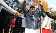 40대 전성시대인가. 29일 끝난 한국프로골프(KPGA)투어 대회에서 43세 황인춘이 우승했고, 같은 날 미국여자프로골프(LPGA)투어에서 40세 크리스티 커가 정상에 올랐다. ‘노장 만세’ 바람이 이번에는 미국프로골프(PGA)투어로 건너갔다. 불혹을 넘긴 나이에 생애 첫 PGA투어 우승을 이룬 라이언 아머(41·미국·사진)가 주인공이다. 프로 데뷔 18년 차인 세계 랭킹 321위 아머는 30일 미국 미시시피주 잭슨CC(파72)에서 열린 샌더슨 팜스 챔피언십 마지막 날 4타를 줄여 최종 합계 19언더파로 체슨 해들리(미국)를 5타 차로 따돌렸다. 1999년 프로에 전향한 아머는 소규모 투어를 전전하다 나이 서른이 넘은 2007년 PGA투어에 뛰어든 늦깎이. 지난 시즌 PGA투어에서 성적 부진으로 출전권을 잃었던 그는 2부 투어를 거쳐 다시 PGA투어에 복귀해 105번째 출전 만에 첫 승을 거뒀다. 우승 상금은 77만4000달러(약 8억8700만 원). 28일이 아들 패트릭의 9세 생일이었던 아머는 “골프를 관두려고 했지만 아내가 말렸다. 아내가 내게 신념을 불어넣었다. 뭔가를 믿고 노력했더니 결국 이뤄졌다”며 울먹였다. 아머는 다음 주 대회를 불참하기로 했다. 그 대신 뉴욕시티마라톤에 출전하는 아내를 응원하러 간다.김종석 기자 kjs0123@donga.com}