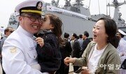 2일 청해부대 24진 장병들이 부산해군작전기지에서 대조영함에 승선하기에 앞서 가족들과 인사를 나누고 있다. 이들은 11월 말까지 소말리아 아덴 만 해역에서 해적 퇴치, 선박 호송 등의 임무를 수행한다. 부산=박경모 기자 momo@donga.com}