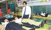 24일 부산 사상구 동서대 장제국 총장이 릴레이 헌혈에 동참한 학생들을 격려하고 있다. 동서대는 부산혈액원과 헌혈 약정을 체결하고 해마다 동·하절기 두 차례에 걸쳐 릴레이 헌혈운동을 펼치고 있다. 박경모 기자 momo@donga.com}
