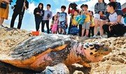 28일 부산 해운대해수욕장 백사장에서 부산아쿠아리움 수족관에 살던 매부리바다거북 2마리가 일광욕을 즐기고 있다. 박경모 기자 momo@donga.com}