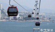 14일 부산 서구 송도해수욕장 앞바다에 설치된 송도해상케이블카가 시범운행을 하고 있다. 21일 공식 운행을 시작하는 송도해상케이블카는 바다 위 1.62km 구간을 운행하는 데 편도로 8분가량이 걸린다. 1964년 국내 처음으로 바다에 세운 케이블카인 송도해상케이블카는 1988년 철거된 지 29년 만에 복원됐다. 부산=박경모 기자 momo@donga.com}