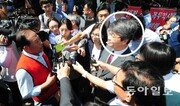 “법적 근거 없는 신고리 5, 6호기 공론화위원회 해체하라. 공론화위원들은 돌아가라.” 28일 오전 11시 울산 울주군 신고리 원자력발전소 5, 6호기 공사 현장이 있는 한국수력원자력 새울원자력본부 정문. 김지형 신고리 5, 6호기 공론화위원회 위원장과 공론화위 위원, 지원단장 등 7명은 주민들의 격한 반발을 직접 접하자 난감한 표정을 감추지 못했다. 공론화위 위원들은 위원회 출범 이후 첫 신고리 현장 방문에서 ‘신고리 원전 5, 6호기 건설 중단 반대 서생면 주민대책위원회’(주민대책위) 소속 주민 100여 명과 마주했다. 주민들은 도로를 점거하고 김 위원장 등이 탄 버스의 진입을 막았다. 한 주민은 바닥에 드러누웠다. 버스에서 내린 김 위원장이 주민들에게 길을 터 달라고 부탁했지만 주민들은 받아들이지 않았다. 결국 공론화위 위원들은 버스에서 내려 새울원자력본부 정문까지 걸어서 이동했다. 이날 공론화위의 현장 방문은 한국원자력산업회의, 한국원자력학회, 한국수력원자력 등의 요구로 이루어졌다. 이들은 “공론화위와 시민참여단이 신고리 5, 6호기 현장을 방문해 직접 눈으로 봐야 한다”고 요구해왔다. 공론화위는 “출범 이후 공론조사 틀을 만드는 데 집중하느라 방문이 늦었다”고 설명했다. 공론화위 위원들은 새울본부 사무실에서 한수원 관계자들로부터 약 30분 동안 신고리 건설 현황 설명을 들었다. 김 위원장은 “우리의 주된 임무는 공론화 과정을 설계하고 관리하는 것이다. 한수원은 시민참여단에 신고리 5, 6호기에 대한 지식과 정보가 잘 전달될 수 있도록 협조해 달라”고 주문했다. 공론화위는 신고리 건설현장과 인근에서 정상 가동 중인 신고리 3호기를 둘러봤다. 신고리 3호기는 5, 6호기와 같은 한국형 신형경수로(APR-1400)로 건설됐다. 2016년 12월부터 상업운전을 시작했다. 공론화위는 당초 현장 방문 후 공사 중단 찬반 측과 차례로 간담회를 할 예정이었다. 하지만 공사 재개를 주장하는 주민대책위의 반발로 공사 중단 반대 측과의 면담은 무산됐다. 이상대 주민대책위 위원장은 “정부 방침대로 움직이는 공론화위를 믿을 수 없다. 면담 전제조건으로 제시한 5개 항을 수용하지 않아 면담을 거부했다”고 말했다. 주민대책위는 공론화 기간 중 정부가 탈원전 정책을 제시하지 말고 원전 반경 5km 이내 주민을 시민참여단에 30% 이상 참여시켜 줄 것 등을 요구하고 있다. 공론화위는 이날 오후 4시 반 울산 울주군 범서읍 주민센터에서 건설 중단 찬성 측과의 면담을 예정대로 진행한 뒤 떠났다. 김 위원장은 “현장에 직접 와 보니 관계자와 지역주민이 얼마나 힘들어하는지 알았다. 공사 중단에 반대하는 지역주민과의 면담이 무산됐지만 의견 청취 기회를 만들도록 계속 논의하겠다”고 밝혔다. 공사 중단을 둘러싼 팽팽한 여론을 공론화위가 현장에서 직접 확인한 만큼 이를 어떤 식으로 반영할지에 관심이 쏠리고 있다. 25일부터 진행되는 1차 여론조사는 현재 전국 국민 2만 명을 대상으로 진행되고 있다. 다만 1차 여론조사와 이후 구성될 시민참여단에 신고리 5, 6호기 인근 지역 주민의 비율을 어느 정도로 반영할지, 의견을 어떻게 수렴할지 등은 아직 정해지지 않았다. 세종=이건혁 gun@donga.com / 울산=정재락 기자}