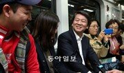 11일 오전 서울 종로구 공평동 캠프사무실에서 대선 공약을 발표한 뒤 부산으로 이동한 안철수 후보가 지하철을 타고 서면역으로 가면서 시민들과 이야기를 나누고 있다. 부산=박영대 기자 sannae@donga.com}