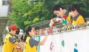 21일 오전 이마트 속초점 임직원들과 설악중학교 학생, 속초시사회복지협의회 직원 등이 강원 속초시 교동에 있는 한 주택의 담벼락에 벽화를 그리고 있다. 이마트는 소외 지역 마을 103곳을 지역 주민들과 함께 재단장하는 사회공헌활동인 ‘우리 마을 가꾸기 프로젝트’를 9월 말까지 진행한다. 속초=박영대 기자 sannae@donga.com}