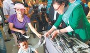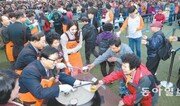 제6회 ‘한우의 날’ 기념행사가 농협중앙회와 전국한우협회 주최로 1일 서울시청 앞 서울광장에서 열렸다. 이동필 농림축산식품부 장관(앞) 등 행사 참가자들은 이날 시민들에게 2013인분의 ‘팔도 한우곰탕’을 나눠줬다. 박영대 기자 sannae@donga.com}