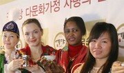 국순당은 26일 서울 종로구 우정국로 백세주마을 종각점에서 다문화 부부에게 한국의 음복문화를 알려주는 ‘다문화 부부 초청 전통 차례주 빚기’ 행사를 열었다. 이날 행사에 참가한 다문화 여성들이 전통주가 담긴 술잔을 들어 보이고 있다. 박영대 기자 sannae@donga.com}