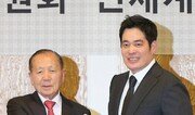신세계그룹은 문화융성위원회와 문화체육관광부가 시행 중인 ‘문화가 있는 날’ 캠페인에 10억 원을 지원한다고 밝혔다. 18일 서울 서초구 남부순환로 예술의전당에서 열린 업무 협약식에서 김동호 문화융성위원회 위원장(왼쪽)과 정용진 신세계그룹 부회장이 악수하고 있다. 박영대 기자 sannae@donga.com}