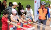 29일 전남 함평군 함평읍 엑스포공원에 마련된 소방체험교실을 찾은 어린이들이 교육용 소화기로 불을 꺼보고 있다. 박영철 기자 skyblue@donga.com}