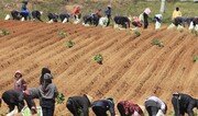 한 해 농사 준비로 분주한 30일 전남 영광군 대마면의 한 황토밭에서 주민들이 일렬로 서서 고구마 모종을 심고 있다. 박영철 기자 skyblue@donga.com}