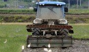 모내기가 본격 시작된 13일 전남 담양군 봉산면에서 쟁기질하는 트랙터 뒤로 땅속 벌레를 잡기 위해 수십 마리의 황로와 백로가 모여들어 진풍경을 연출하고 있다. 박영철 기자 skyblue@donga.com}