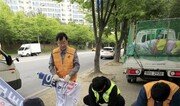 17일 광주 광산구 남부대 앞 교차로에서 광산구 불법광고물 철거팀장과 직원들이 선거철을 맞아 급증하고 있는 불법 현수막을 철거하고 있다. 박영철 기자 skyblue@donga.com}
