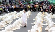 5·18민주화운동 기념일 전날인 17일 오후 광주 동구 금남로에서 열린 전야제에서 1980년 5월 당시 숨진 김영철 씨의 딸 연우 씨(앞)가 진혼의 몸짓을 하고 있다. 이날 전야제에서는 6·15공동선언실천 북측위원회가 보낸 “5·18민주화운동 절규는 반드시 풀어줘야 한다. 5·18민주화운동 38돌이 판문점 선언 이행을 힘 있게 고무시키고 있다”는 메시지가 공개됐다. 북한이 5·18 전야제에 메시지를 보낸 것은 이번이 처음이다. 광주=박영철 기자 skyblue@donga.com}
