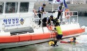여름을 앞두고 29일 전북 군산시 신치항에서 군산해경 새만금파출소 직원과 훈련지원단 단원들이 관광객 해상사고에 대비해 합동으로 해상 인명구조 훈련을 하고 있다. 박영철 기자 skyblue@donga.com}