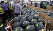 초여름의 길목에 들어선 17일 광주 각화동 농산물시장 경매장에 수박과 참외 등 각종 여름과일이 출하 전 산더미처럼 쌓여 있다. 박영철 기자 skyblue@donga.com}