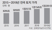 문재인 정부 3년간 전국의 토지 가격이 연평균 1000조 원 이상 증가한 것으로 나타났다. 경제정의실천시민연합(경실련)은 “역대 정권 중 가장 높은 상승 폭”이라고 비판했다. 경실련은 21일 서울 종로구 사무실에서 기자회견을 열어 “지난해 말 기준 전국 땅값은 1경2281조 원으로 문재인 대통령 취임 전인 2016년 하반기와 대비해 32.5%(3012조 원)가 증가했다”고 밝혔다. 해마다 평균 약 1004조 원씩 늘어난 셈이다. 이 같은 토지 가격은 같은 기간 국토교통부 공시지가를 기준으로 할 때 1089조 원이 늘어난 것과 비교하면 큰 차이를 보인다. 한국은행 통계를 기준으로 해도 1621조 원이 늘어났다. 경실련 측은 “정부 통계는 부동산시장의 시세를 제대로 반영하지 못하고 있다. 자체 조사를 통해 새로운 추정치를 냈다”고 했다. 경실련은 국토부의 공시지가가 민간이 소유한 토지 시세를 평균적으로 43%만 반영하고 있다고 봤다. 경실련 관계자는 “2000년부터 지난해까지 전국 토지 거래를 분석해 국토부 공시지가와 비교한 결과”라고 설명했다. 다만 정부가 소유한 토지는 실제 거래가 거의 없다는 점을 고려해 한국은행이 발표하는 연간 가격 통제를 그대로 적용했다. 경실련이 만든 새로운 기준을 적용했을 때, 전국의 전체 토지 가격은 박근혜 정부 4년(2012∼2016년) 동안 18.8%가 올랐다. 이명박 정부 5년(2007∼2012년)에선 1.29%만 증가했다. 두 정부의 9년간 연평균 증가액은 174조 원이었다. 경실련은 “민간 소유 토지만 놓고 보면 이전 두 정부에서는 9년 동안 238조 원이 오른 반면, 현 정부 3년 사이에 2669조 원이 늘어났다”고 주장했다. 김헌동 경실련 부동산건설개혁본부장은 “국토부와 한국은행이 1800억 원의 예산과 수많은 전문가를 투입해 땅값 통계를 내고 있지만 시세도 제대로 반영하지 않고 있다”며 “정부가 우선 통계 왜곡부터 바로잡은 뒤 가격 안정대책을 내놓아야 할 것”이라고 지적했다.지민구 기자 warum@donga.com}