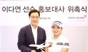 아시아나항공은 ‘2019 아시아나항공 오픈’ 우승자 이다연 선수(메디힐, 22)를 공식 홍보대사로 위촉했다고 19일 밝혔다. 이날 서울 강서구 아시아나항공 본사에서는 홍보대사 위촉식이 진행됐다. 이다연 선수는 향후 1년 동안 아시아나항공이 취항하는 국제선 전 노선의 비즈니스클래스 항공권을 무상으로 지원받는다.이다연 선수는 지난 2015년 프로에 입문한 후 2019 아시아나항공 오픈을 비롯해 통산 4회 우승을 기록하면서 기량을 뽐내고 있다.홍보대사로 위촉된 이다연 선수는 “아시아나항공 오픈 우승의 영광에 이어 홍보대사로 위촉돼 감회가 새롭다”며 “기회가 되는대로 해외 대회에 참가할 예정으로 국적 항공사 지원을 받는 만큼 더욱 노력해 좋은 경기로 보답하겠다”고 소감을 말했다.한편 이다연 선수가 우승한 2019 아시아나항공 오픈은 지난달 5일부터 7일까지 중국 웨이하이포인트호텔&리조트에서 개최됐다. 한국과 중국 선수 76명이 참가해 사흘간 경기를 펼쳤다.동아닷컴 김민범 기자 mbkim@donga.com}