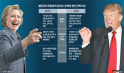 《 민주당 힐러리 클린턴과 공화당 도널드 트럼프가 미국 대선 본선에서 맞붙을 가능성이 한층 커졌다. 공화당 트럼프 후보는 26일 펜실베이니아, 메릴랜드, 코네티컷, 델라웨어, 로드아일랜드 등 5개 주에서 열린 당내 경선에서 5곳 모두 압도적인 표 차로 완승을 거두며 최소 988명의 대의원을 확보해 8분 능선에 도달했다(과반 대의원 수 1237명). 남은 10개 주의 경선 결과에 따라 7월 전당대회 전에 과반 대의원을 채울 수도 있다. 민주당 클린턴 후보는 로드아일랜드를 제외한 4개 주에서 승리해 버니 샌더스를 훌쩍 따돌렸다. 이로써 최소 2168명의 대의원을 얻어 후보 지명에 필요한 과반 대의원(2383명)의 91%를 확보했다. 》 민주당 힐러리 클린턴 전 국무장관(69)과 공화당 도널드 트럼프(70)가 대선후보 지명에 성큼 다가섰다. 클린턴은 이날 5개 주 가운데 4개 주에서 이겨 사실상 대선후보를 확정했다. CNN에 따르면 샌더스가 남은 14개 주 경선에서 90%의 지지를 얻지 못하면 클린턴은 7월 전당대회 전 대선후보 지명을 확정짓게 된다. 트럼프는 이날 5개 주 전역에서 평균 59%의 득표율로 테드 크루즈 상원의원(46·텍사스)과 존 케이식 오하이오 주지사(64)를 제압했다. 뉴욕타임스는 “트럼프의 압승으로 7월 경쟁 전당대회(contested convention)가 열릴 가능성이 낮아졌다”고 분석했다. 거친 발언에도 불구하고 트럼프가 연승 행진을 이어가면서 공화당 유권자의 민심이 트럼프에게 있다는 사실이 점점 현실로 다가온 것이다. 물론 남은 10개 주 경선 결과는 아직 알 수 없다. 트럼프가 과반 대의원을 확보하려면 앞으로 평균 57%의 득표율을 올려야 하는데 크루즈와 케이식은 다음 경선 지역인 인디애나를 시작으로 오리건과 뉴멕시코 주 경선에서 후보 단일화에 나서 반(反)트럼프 연대를 구축하기로 했다. 그러나 워싱턴포스트는 “크루즈-케이식 연대가 오히려 경선 룰을 어긴다는 역풍을 맞을 수도 있다”고 지적했다. 크루즈는 케이식의 양보를 얻어낸 인디애나 주 경선(5월 3일)이 트럼프 매직넘버 확보 저지를 위한 마지막 기회로 보고 5개 주 경선이 끝나기도 전인 23일 인디애나로 날아가 유세를 벌였다. 클린턴과 트럼프는 이날 경선 승리 후 상대방을 겨냥해 치열한 11월 본선 대결을 예고했다. 클린턴은 승리 연설에서 트럼프를 겨냥해 “사랑이 증오를 트럼프하는(love trumps hate) 미국을 만들자”고 역설했다. 트럼프의 이름이 동사로 ‘이기다’라는 뜻을 이용한 선거 구호다. 트럼프도 승리 연설에서 “내가 사실상 대선 후보다. 힐러리가 남자였다면 득표율이 5%도 되지 않았을 것”이라고 했다. 또 “핵무기는 가장 큰 위협이며 김정은이 더이상 나가도록 내버려둬서는 안 된다”며 대통령이 되면 중국을 압박해 북한 핵문제를 해결하겠다고 주장했다. 미 현지 언론에선 벌써부터 클린턴과 트럼프의 본선 대결을 가정하며 여러 변수를 거론하고 있다. 정치전문 사이트 리얼클리어폴리틱스가 3월 29일∼4월 24일 6개 여론조사 결과를 종합한 결과 둘이 본선에서 붙으면 클린턴(49%)이 트럼프(40.5%)를 8.5%포인트 차로 이기는 것으로 나타났다. 하지만 일각에선 트럼프가 이날 경선에서 5개 주를 싹쓸이한 데서 볼 수 있듯이 평소에는 정치적인 발언을 하지 않다가 투표장에 가서 트럼프에게 몰표를 던지는 백인 노동자 계층의 트럼프 지지 패턴을 감안해 본선을 전망해야 한다고 지적한다. 찰스 머리 미 기업연구소(AEI) 선임연구위원은 워싱턴포스트 인터뷰에서 “극소수의 기성 정치권과 언론들이 자기들만의 틀에 갇혀 정작 미 전역에서 불고 있는 트럼프 돌풍의 본질을 이해하지 못하고 있다”고 꼬집었다. 현재 나타난 여론조사 수치로는 트럼프 현상을 정확히 반영하지 못할 수도 있다는 분석이다.워싱턴=이승헌 특파원 ddr@donga.com}