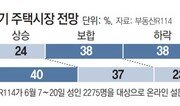 올해 하반기(7∼12월) 집값이 하락할 것이라는 전망이 상승할 것이라는 전망보다 우세한 것으로 나타났다. 부동산 정보업체인 부동산R114가 지난달 7일부터 20일까지 전국 2275명을 대상으로 ‘2022년 하반기 주택 시장 전망’ 설문조사를 실시한 결과 집값 하락을 전망한 응답자가 38%로 상승을 전망한 응답자(24%)보다 많았다고 30일 밝혔다. 보합 전망은 38%로 상반기(1∼6월) 조사와 동일했다. 하락 전망이 상승 전망을 앞지른 건 2019년 상반기 조사 이후 약 3년 만이다. 집값이 내릴 것이라고 본 응답자의 34%는 ‘경기 침체 가능성’을 가장 큰 이유로 꼽았다. 이어 △대출 금리 인상 가능성(33%) △대출 규제로 매수세 약화(11%) △가격 부담에 따른 거래량 부족(10%) 등의 순이었다. 하반기 전셋값이 상승할 것이라고 응답한 비중은 40%로 하락 전망(23%)보다 높았다. 전셋값이 오른다고 응답한 실수요자들 가운데 42%는 매수 심리가 위축돼 전세 수요가 증가할 것이라고 봤다. 이어 △임대인의 월세 선호로 전세 공급 부족(18%) △임대차3법 시행 영향(13%) 등의 순이었다. 부동산R114 관계자는 “금리 인상 속도가 빨라지며 매수 심리가 크게 위축됐다”며 “매매 시장 위축으로 전세 수요가 늘어날 수 있다”고 했다.최동수 기자 firefly@donga.com}