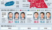 여야 쏠림 현상이 두드러졌던 강원과 제주의 민심이 심상치 않다. 2012년 19대 총선 당시 강원 지역에는 9곳 모두 새누리당이 빨간 깃발을 꽂았다. 제주는 3석 모두 더불어민주당이 싹쓸이했다. 하지만 4·13총선의 성적표는 섣불리 예측하기 어렵다. 특히 제주는 최근 지역 언론사의 여론조사에서 지역구 3곳 모두 혼전 양상인 것으로 조사됐다. 이런 상황에서 이번 주말 새누리당 김무성 대표와 더민주당 김종인 비상대책위원회 대표가 나란히 제주를 찾는다. 3일 제주4·3평화공원에서 열리는 ‘제68주년 4·3 희생자 추념식’에 참석하기 위한 것이지만 탈환이냐, 수성이냐를 놓고 기 싸움이 치열할 것으로 보인다. ○ 제주, 12년 야당 독식 깨지나 제주는 17, 18, 19대 총선까지 지역구 3석(제주갑·을, 서귀포) 모두 야당의 차지였다. 서귀포는 16대 총선부터 내리 16년째다. 그러나 최근 여론조사를 보면 3곳 모두 더민주당의 승리를 장담하기 어려운 상황이다. 제주MBC 등 지역 신문과 방송 공동 여론조사 결과 제주을에서는 새누리당 부상일 후보가 지지율 42.2%로 더민주당 오영훈 후보(31.1%)와 국민의당 오수용 후보(4.3%)에게 앞서고 있다. 제주갑과 서귀포에서도 새누리당 후보와 더민주당 후보가 1위를 놓고 엎치락뒤치락하고 있다. 여기에는 특정 정당과 인물이 장기간 독주해 온 점이 영향을 미친 것으로 보인다. 새누리당 제주시당 황우진 사무처장은 “변화의 바람이 2014년 지방선거에서 원희룡 제주도지사를 탄생시켰고 이번 총선에도 이어지고 있다”고 주장했다. 더민주당 경선에서도 이 같은 분위기가 일부 나타났다. 제주을 경선에서 3선의 김우남 의원이 40대 도의원 출신인 오영훈 후보에게 패했다. 제주에 외지인들이 급증하며 ‘궨당 정치’의 위력이 약화됐기 때문이라는 분석도 있다. ‘궨당’은 ‘친척’을 뜻하는 제주 방언이다. 중앙선거관리위원회에 따르면 4·13총선 제주 유권자는 49만658명으로, 19대 총선(44만1470명)보다 11.1% 늘었다. 토박이가 많은 지역 특성상 연고가 선거 때마다 중요 변수였지만 이주민의 표심은 이전과 다르게 움직인다는 것이다. ○ 강원, 새누리 싹쓸이 깨지나 강원은 여전히 여당이 강세다. 춘천KBS 등 도내 방송 3사의 공동 여론조사(3월 29일) 결과 현재 지역구 8곳 중 6곳에서 새누리당 후보가 우세한 것으로 나타났다. 하지만 19대처럼 석권을 낙관할 수 없다는 관측이 나온다. 특히 동해-삼척과 태백-횡성-영월-평창-정선 등 2곳에서 각각 무소속 후보와 더민주당 후보가 새누리당 후보와 접전을 펼치고 있어서다. 동해-삼척의 경우 무소속 이철규 후보(32.1%)와 새누리당 박성덕 후보(30%)가 오차범위 내에서 혼전 중이다. 경기지방경찰청장을 지낸 이 후보는 컷오프(공천 배제)된 뒤 탈당해 무소속 출마했다. 태백-횡성-영월-평창-정선에선 3선 강원도지사를 지낸 무소속 김진선 후보가 현직 의원인 새누리당 염동열 후보와 경쟁하고 있다. 초반 여론조사에선 염 후보가 10%포인트가량 앞서고 있지만 김 후보가 2018평창겨울올림픽 조직위원장을 맡는 등 지명도가 높아 승부를 알 수 없다는 전망도 나온다. 원주을에서는 현역 의원인 새누리당 이강후 후보(37.3%)와 더민주 송기헌 후보(32.8%)가 오차범위 내 접전을 벌이고 있다. 국민의당 이석규 후보의 지지율은 9.2%. 이, 송 후보는 19대 총선에서도 맞붙어 당시 이 후보(48.7%)가 송 후보(46.2%)를 눌렀다. 박빙의 승부를 벌이고 있는 상황에서 후보 단일화 여부도 변수로 작용할 것으로 보인다.홍수영 기자 gaea@donga.com}