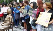 27일 서울 종로구 주한 일본대사관 앞에서 일본군 위안부 문제 해결을 위한 제1141차 정기 수요집회가 열렸다. 이날 참석자들은 일본 정부의 공식 사죄와 피해자들에 대한 법적 배상을 촉구하는 내용의 피켓을 들고 항의했다. 전영한 기자 scoopjyh@donga.com}