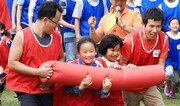 서울 서초구 서초문화예술공원에서 28일 열린 ‘참 좋은 아빠’ 가을운동회에 참가한 아빠들이 아이들과 함께 ‘큰 바통 릴레이’ 경기를 하고 있다. 이번 운동회는 서초구청이 부부가 같이 아이를 돌보는 ‘파더링’(아빠 역할하기) 사업 활성화를 위해 개최했고 100여 가족이 참가했다. 전영한 기자 scoopjyh@donga.com}