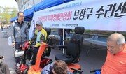 장애인의 날 기념주간인 17일 광주 서구 염주체육관 광장에서 광주지체장애인협회가 휠체어 등 장애인 보장구 무료수리센터를 열어 점검 및 수리 봉사활동을 하고 있다. 박영철 기자 skyblue@donga.com}