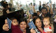 태국에 체류하던 미얀마 난민 4가족 23명이 25일 인천국제공항 입국심사대를 통과하며 대한민국 여권을 들어 보이고 있다. 미얀마 난민 가족은 2015년부터 3년간 시범적으로 시행된 법무부의 재정착난민제도에 따라 한국에 정착하게 됐다. 인천=양회성 기자 yohan@donga.com}