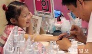 27일 서울 강남구 코엑스에서 열린 ‘2017 코네일 엑스포’에서 한 어린이가 네일아트 시연을 받으며 즐거워하고 있다. 박람회는 28일까지 진행된다. 양회성 기자 yohan@donga.com}