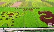 13일 강원 강릉시 강릉녹색체험센터 앞 논에 검은색, 연두색, 진한 갈색 등 3가지 색깔 벼를 활용해 그린 2018 평창 겨울올림픽 마스코트 수호랑(왼쪽)과 반다비가 선명하다. 평창 겨울올림픽 빙상경기 개최 도시인 강릉시는 지난달 완성한 이 그림을 다음 달까지 유지할 계획이다. 강릉=양회성 기자 yohan@donga.com}
