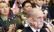 아시아태평양 국가의 육군 참모총장들이 안보 현안을 논의하는 ‘태평양지역 육군참모총장회의(PACC)’가 18일 서울 용산구 그랜드하얏트호텔에서 열렸다. 지난해 사드 배치 논란이 불거진 이후 중국 측 고위 장성으로는 처음으로 공식 방한한 유하이타오(尤海濤) 중국 인민해방군 육군 부사령원(중장·가운데)이 개회식에서 박수를 치고 있다. 양회성 기자 yohan@donga.com}