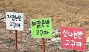 마치 삼색 신호등처럼 세 가지 색깔의 ‘고구마 팻말’이 나란히 서 있네요. 재밌는반, 해맑은반, 신나는반 아이들이 봄을 맞아 정성껏 고구마를 심었나 봅니다. 4, 5개월 뒤면 씨알 굵은 고구마가 주렁주렁 자라있겠죠. 재밌는 고구마, 해맑은 고구마, 신나는 고구마. 어떤 모양과 맛일지 벌써 궁금하네요. 김재명 기자 base@donga.com}