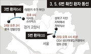 국내에서 신종 코로나바이러스 감염증(우한 폐렴) 2차 감염이 확인된 지 하루 만에 3차 감염까지 나오면서 “3, 4차는 시간문제”라던 전문가들의 우려가 현실이 됐다. 확진자가 늘어나면서 검역 속도에 대한 우려와 더불어 ‘지역’과 ‘대상’에 대한 불안감까지 커지는 상황이다. 수도권에 머무르던 바이러스가 전북까지 번졌고 그동안 확진 환자가 주로 50대 남성에 집중됐던 것과 달리 20, 30대 젊은 환자와 여성도 나왔기 때문이다. 이제는 누구든, 어디든 ‘감염에 상대적으로 안전하다’고 자신할 수 없다는 점에서 확진자 증가 추이에 이목이 쏠리는 상황이다. ○ 1, 1, 1, 1, 3, 4… 급증하는 감염 첫 확진 사례가 확인된 지난달 20일 이후 29일까지 2, 3일에 1명꼴로 나왔던 확진 환자는 30일 한꺼번에 3명이 나온 데 이어 31일 4명이 무더기로 나왔다. 7번 환자의 경우 30일 오후 늦게 확진 판정을 받았지만 질병관리본부(질본)가 확진 사실을 공개한 시점은 31일이다. 31일 공개된 5명 중 3명은 모두 중국 후베이성 우한시에 가지 않은 2, 3차 감염자다. 지역 내 감염 우려가 점점 커진다는 이야기다. 6번 환자(55)의 아내(10번 환자)와 아들(11번 환자)은 국내 첫 3차 감염 환자가 됐다. 6번 환자는 ‘슈퍼 전파자’ 우려를 낳았던 3번 환자의 친구로 22일 저녁식사를 함께하면서 옮은 것으로 추정된다. 우한에 다녀온 다섯 번째 환자(33)의 지인은 2차 감염자(9번 환자)로 확인됐다. ○ 수도권 넘어선 바이러스 이날 역학조사를 마치고 8번째 환자로 추가된 62세 여성은 전북 군산에 사는 것으로 알려졌다. 서울 경기 등 수도권을 제외한 지방에서 나온 첫 확진 환자 사례다. 지금까지 수도권에 비해 지방은 상대적으로 우한 폐렴과는 거리가 먼 것으로 여겨졌지만 수도권에서 멀리 떨어진 곳에서 돌연 확진자가 나온 만큼 어디도 안심할 수 없게 됐다. 이 여성은 23일 우한에서 칭다오를 거쳐 인천공항으로 입국한 후 25일 오후 군산으로 출발해 오후 6시 집에 도착했다. 입국한 뒤 군산으로 돌아가기까지 이틀 사이에 서울 서초구 서초동의 식당에서 식사를 하는 등 수도권에서 돌아다닌 것으로 알려졌다. 27일 증상을 느껴 오후 2시 군산의 한 내과에서 진료를 받았고 28일 오후 2시 군산의료원에서 바이러스 검사를 했지만 음성 판정을 받아 집으로 돌아갔다. 이튿날 여성은 군산시 문화동에서 점심식사를 했고 오후 4시까지 이마트 군산점에서 쇼핑을 했다. 국가지정격리병상인 원광대병원에 입원해 격리치료를 받기 전까지 수도권과 군산을 광범위하게 활보한 것이다. ○ 나이도 성별도 확대 환자들의 성별과 연령층도 확대됐다. 29일까지 환자 대부분이 50대 남자였던 데 비해 이날 새롭게 추가된 7번 환자(28)를 비롯해 5번 환자와 11번 환자는 20, 30대 젊은 환자들이었다. 바이러스가 젊은층까지 확산됐다는 것은 그만큼 빠르게 전파될 수 있다는 의미라고 전문가들은 말한다. 정기석 한림대성심병원 호흡기내과 교수는 “젊은 사람들은 아무래도 활동량이 많고 중장년층에 비해 더 많은 사람을 만나는 만큼 확산 속도를 빠르게 할 수 있다”고 설명했다. 환자 발생 지역과 연령층이 넓어지면서 방역이 더욱 어려워지는 것 아니냐는 우려가 나온다. 김남중 서울대병원 내과학 교수는 “이제 추적하기도, 격리하기도 힘든 환자들이 나온다는 뜻”이라며 “지금까지 방역이 국내 유입 차단에 힘쓴 것이었다면 이제 지역사회 감염 조짐이 있는지 확인하는 감시체계를 제대로 수립해야 한다”고 지적했다.이미지 기자 image@donga.com}
