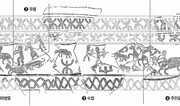 말을 탄 주인공이 개로 보이는 동물을 데리고 어디론가 가고 있다. 활을 든 이들은 사슴 등 여러 동물을 향해 시위를 당기려 한다. 또 다른 인물들은 춤을 추는 듯 기마행렬을 따른다. 1500년 전 무덤 주인공의 생전 활동 모습을 그린 것일까, 저승에서의 영화(榮華)를 기원한 그림일까. 경북 경주시 황오동 쪽샘지구 44호 무덤에서 이런 행렬도를 새긴 5세기 장경호(長頸壺·목이 긴 토기 항아리)가 출토됐다. 이종훈 국립경주문화재연구소장은 “행렬이라는 큰 주제를 바탕으로 기마, 무용, 수렵하는 이들이 복합적으로 그려진 토기가 발견된 건 처음”이라며 “내용의 구성이 풍부하고 회화성이 우수한 귀중 자료”라고 16일 밝혔다. 행렬도가 새겨진 토기는 무덤 둘레의 호석(護石) 북쪽 자갈을 깐 층에서 깨진 상태로 일부 조각이 나왔다. 문양은 크게 4단으로 위쪽 1, 2단과 제일 밑단에는 기하학적 문양을 반복했고 3단에 인물과 사슴 멧돼지 말 개 등 동물을 표현했다. 문양과 그림은 빗처럼 생긴 도구로 쓸듯이 새겼다. 제사용 토기로 보이며 원래 높이는 약 40cm였을 것으로 추정된다. 특히 행렬도의 주제가 무용총 수렵도와 무용도, 안악 3호분 행렬도를 비롯한 고구려 고분벽화와 유사해 주목된다. 말의 머리 부분 갈기를 묶어 뿔처럼 묘사한 점은 안악 3호분 행렬도와 유사하다. 인물들이 팔을 나란히 든 모습은 무용도와 닮은 점이 있다. 이 연장선상에서 행렬의 주인공과 함께 있는 개는 고구려 벽화처럼 무덤을 지키는 역할을 맡은 것으로 해석할 수도 있다. 이번 토기는 신라가 5세기 초 관계가 밀접했던 고구려의 문화적 영향을 받은 증거로 해석된다. 5세기 전 시대에 풍경화에 가까운 행렬도가 그려진 신라 토기는 없었다. 전호태 울산대 역사문화학과 교수는 “그러나 고구려와 중국의 장례 관련 그림에서는 사냥과 행렬이 흔한 테마”라며 “토기에 드러난 회화적 요소는 서기 400년 이후 신라가 고구려 전성기의 문화로부터 압도적인 영향을 받은 것으로 보인다”고 말했다. 쪽샘지구 44호 무덤에서는 말 문양이 그려진 발형기대(鉢形器臺·굽다리접시를 확대한 모양의 그릇 받침대) 조각도 출토됐다. 말갈기, 발굽, 관절 등 말 2마리의 모습이 묘사됐다. 몸통의 격자무늬는 말 갑옷을 표현한 것으로 보인다. 이 밖에 호석 주변에서 대호(大壺·큰항아리) 9점을 비롯한 제사 유물 110여 점이 출토됐다. 대호는 호석을 따라 일정 간격으로 배치됐고, 그 안팎에서 굽다리접시(高杯·고배), 뚜껑 접시(蓋杯·개배), 흙 방울(土鈴·토령) 등 소형 토기들을 발견했다. 쪽샘지구 44호 무덤은 지름 약 30m의 중간 크기 적석목곽묘(積石木槨墓·돌무지덧널무덤)다. 2014년 발굴을 시작했다. 연구소는 내년까지 돌을 쌓아놓은 적석부를 건축적, 구조공학적 관점에서 정밀 조사하고 시신과 부장품을 두는 매장 주체부를 발굴할 방침이다. 쪽샘지구에는 4∼6세기 신라 왕족과 귀족의 무덤 1100여 기가 몰려 있다.경주=조종엽 기자 jjj@donga.com}