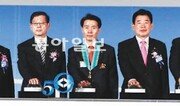 30일 서울 강남구 삼성동 코엑스에서 열린 ‘한국세무사회 창립 50주년’ 기념식에 참석한 내빈들이 비전선포식을 알리는 버튼을 누르고 있다. 이날 기념식에서 정부는 납세자 권익보호와 세제 및 세정의 발전에 기여한 공로로 정구정 한국세무사회장에게 은탑산업훈장을 수여하는 등 150명의 세무사에게 포장 및 표창을 줬다. 왼쪽부터 이현동 국세청장, 정선태 법제처장, 김황식 국무총리, 정구정 회장, 김진표 민주통합당 원내대표, 이용섭 민주당 정책위의장. 한국세무사회 제공}