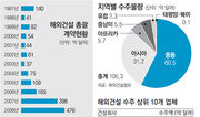국내 건설업체의 올해 해외공사 수주액이 벌써 100억 달러 고지를 넘었다. 2005년 이후 8년 연속으로 100억 달러(11조 3000억 원) 이상 수주를 한 셈이다. 올해 수주목표액 700억 달러 달성에도 청신호가 켜졌다. 1일 해외건설협회에 따르면 올해 들어 4월 말까지 해외건설 수주액은 105억2993만 달러로 집계됐다. 지난해 같은 기간(170억 달러)보다는 38% 정도 줄었다. 하지만 수주가 확실시되거나 협상이 막바지에 이른 공사물량만 300억 달러 규모여서 연초 수주목표액 700억 달러는 무난히 달성할 것으로 협회 측은 보고 있다. 김태엽 해외건설협회 정보기획실장은 “유럽발 재정위기 여파로 해외 발주처들이 협상이 끝난 공사도 계약을 늦추고 있어 4월 말까지 수주액이 지난해 수준을 밑돌고 있다”며 “하지만 국내 업체의 텃밭인 중동지역의 경우 유가의 고공행진이 연말까지 이어질 것으로 전망돼 해외공사 수주목표 달성은 어렵지 않을 것”이라고 말했다. 게다가 4월 말까지 수주공사 건수(2011년 170개→2012년 183개)나 진출업체(139개사→149개사), 진출국가(67개국→68개국) 등이 모두 지난해보다 늘어난 점도 긍정적이다. 또 전체 수주액에서 중소업체가 차지하는 수주액(12억 달러) 비중이 11.4%로 지난해 비중(8.1%)보다 크게 높아진 점도 눈길을 끈다. 정부가 중소업체의 해외시장 진출을 촉진하기 위해 지속적으로 지원책을 내놓은 것이 효과를 거둔 것으로 풀이된다. 업체별로는 현대건설이 31억3700만 달러로 1위를 달리고 있고, 최근 해외건설 시장에서 두각을 나타내고 있는 삼성엔지니어링이 18억7900만 달러로 2위에 올랐다. 그 뒤를 삼성물산(8억4700만 달러) 두산중공업(7억6100만 달러) 등이 잇고 있다. 국가별로는 국내업체의 텃밭으로 여겨지고 있는 사우디아라비아에서 28억 달러를 수주했고, 카타르(15억 달러) 이라크(10억 달러) 등의 순으로 수주액이 많았다. 지역별로는 중동이 60억 달러로 압도적으로 많았고, 아시아가 31억 달러로 2위를 차지했다. 공사종류별로는 최근 몇 년간 강세를 보였던 플랜트 분야를 제치고 도로가 1위에 올랐다.황재성 기자 jsonhng@donga.com}