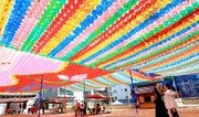 부처님 오신 날을 한 달여 앞둔 8일 서울 조계사 오색빛깔의 연등이 경내를 뒤덮었습니다.봄바람에 나부끼는 연등은 점심을 마친 뒤 산책하는 직장인들, 도심 속 절의 이국적인 모습에 홀린 외국인들로 붐볐습니다.높은 곳에서 바라보니 ‘우리 모두 하나 되어’란 봉축 표어가 나타납니다.서로가 둘이 아닌 하나임을 깨닫고 평화로운 대한민국을 만들어가자는 의미를 담고 있습니다.늘 바쁘고 분주한 도심의 일상. 형형색색의 연등을 보면서 힐링해 보면 어떨까요?송은석기자 silverstone@donga.com}