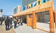 12일 오후 서울 광화문광장 남측 ‘세월호 천막’이 있던 자리에 개관한 기억·안전 전시공간 ‘기억과 빛’을 시민들이 둘러보고 있다. 79.98㎡ 규모의 목조건물인 전시관에는 팽목항 일대를 그린 그림을 볼 수 있는 전시실 등의 공간이 마련됐다. 송은석 기자 silverstone@donga.com}