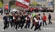 18일 오후 서울 성북구 고려대에서 고려대생들이 각 학과 깃발을 들고 교문 밖으로 달려 나가고 있다. 고려대는 4·19혁명의 도화선이 된 4·18의거를 기념하기 위해 매년 강북구 국립 4·19민주묘지까지 마라톤을 하는 ‘4·18 구국대장정’을 연다.송은석 기자 silverstone@donga.com}