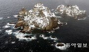 13일 항공순찰에 나선 동해해경 CN-235 항공기에서 바라본 독도 전경. 최근 몰아친 한파와 폭설의 영향으로 독도가 하얗게 옷을 갈아입었다. 해경은 독도 주변에서 5000t급 경비함과 순찰 헬기, 항공기를 투입해 영해를 수호하고 있다고 밝혔다. 독도=박영철 기자 skyblue@donga.com}
