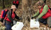 21일 전남 장성군 북하면 백암산에서 가인마을 주민들이 고로쇠나무 수액을 채취하고 있다. 고로쇠나무 수액은 겨우내 추웠던 날씨가 풀리기 시작하면 채취가 가능해 ‘봄의 전령’이라고 불린다. 장성=박영철 기자 skyblue@donga.com}