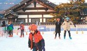 29일 전남 나주시 옛 조선시대 관청인 나주목사내아 앞 광장에 설치된 야외스케이트장을 찾은 어린이들이 한겨울 스케이트를 즐기고 있다. 나주 야외스케이트장은 전남지역에서 최초로 개장해 운영하고 있다. 박영철 기자 skyblue@donga.com}